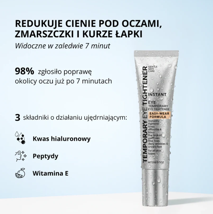 Szczerze mówiąc, byłam sceptyczna. Ale już przy pierwszej aplikacji byłam naprawdę zaskoczona. Opuchlizna pod oczami zniknęła dosłownie w kilka chwil. Nawet mój mąż zauważył i zapytał, czy coś zrobiłam. Efekt utrzymuje się u mnie spokojnie przez cały dzień. A co najlepsze – makijaż bez problemu można nałożyć na wierzchMagda K