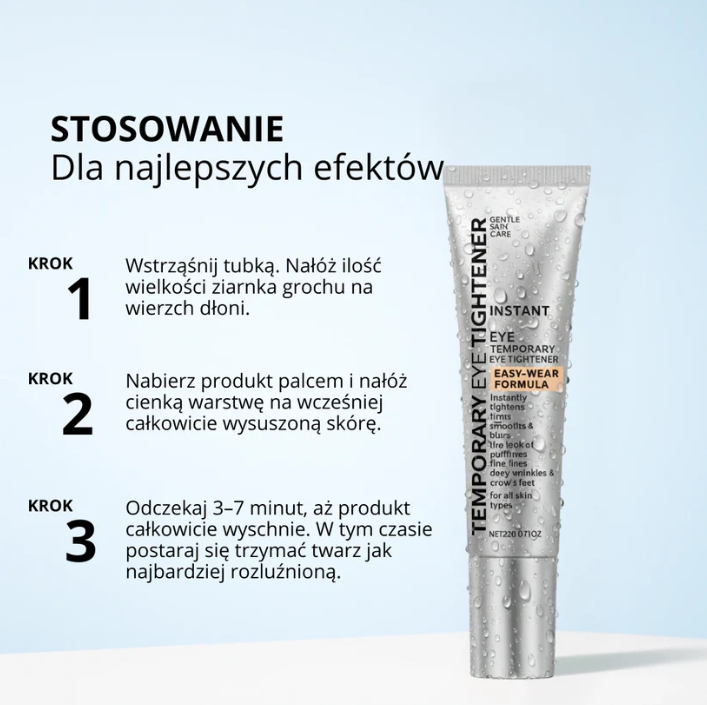 Nie używaj wcześniej kremu nawilżającego ani kremu pod oczy, ponieważ może to zmniejszyć efekt liftingujący.
